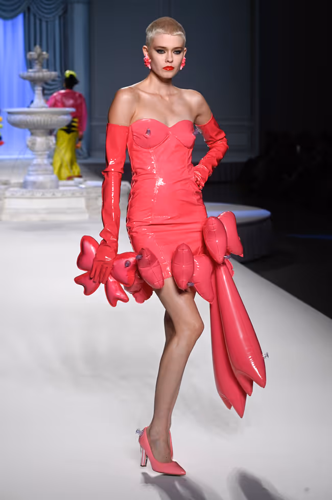 Jeremy Scott is one of the most successful designers when it comes to blending fashion and humor. During his tenure working at Moschino, he and his team did thorough research on what was relevant in pop culture and blended it with unexpected twists that often questioned what tasteful clothing entails. As it quite often happens with humor, he often received pushback and criticism from fashion critics. Some collections were objectively more successful and created more positive reactions than others.