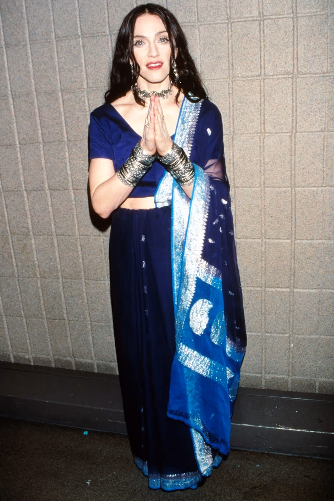 In 1998, Madonna showed up at the VH1 Awards wearing a traditional blue sari. At this award show, she was honoured with the Gianni Versace Tribute Award, as well as a trophy for Most Fashionable Artist. But this look garnered a decent amount of buzz.