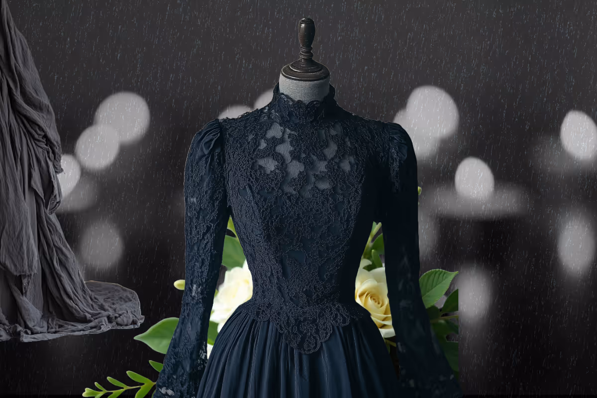 While rigid mourning dress codes have largely disappeared in Western society, many still instinctively reach for darker colors during periods of grief. However, contemporary mourning fashion has evolved to become more personalized. Some choose to wear items that belonged to their departed beloved ones, others select pieces in their loved one's favorite color, and some commission custom pieces that incorporate elements of the deceased's clothing.